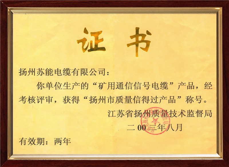 矿用产品安全标志证书