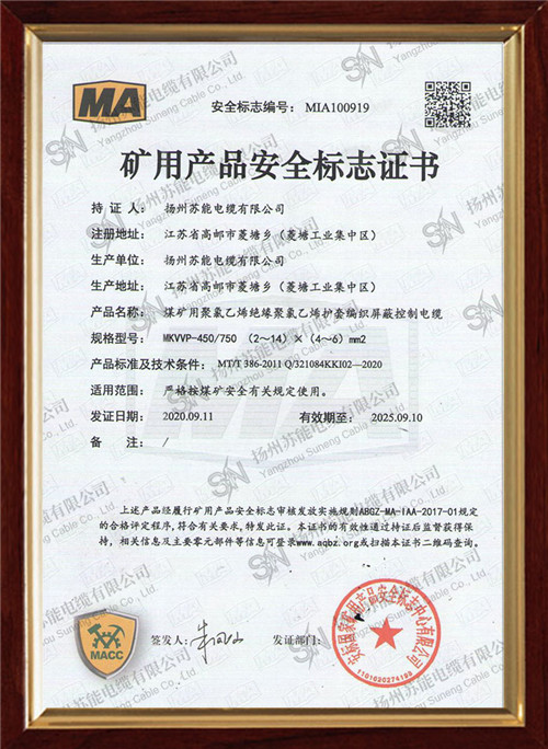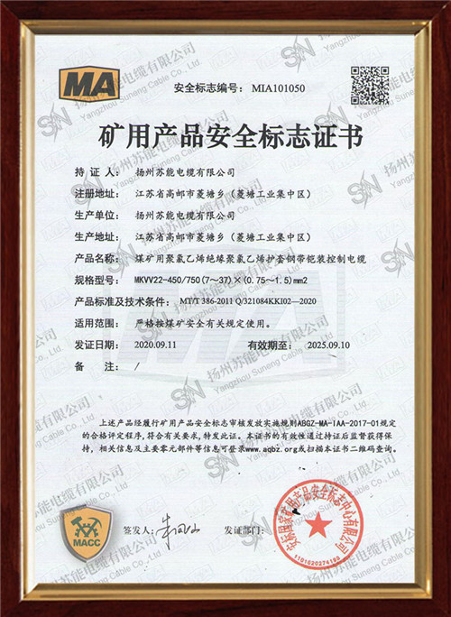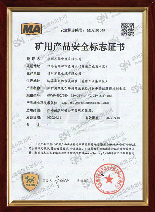 矿用产品安全标志证书