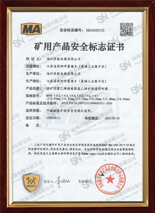 矿用产品安全标志证书